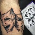 Tetování divadelní masky na lýtku
