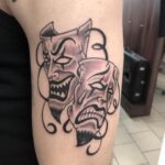 Tetování divadelní masky na rameno