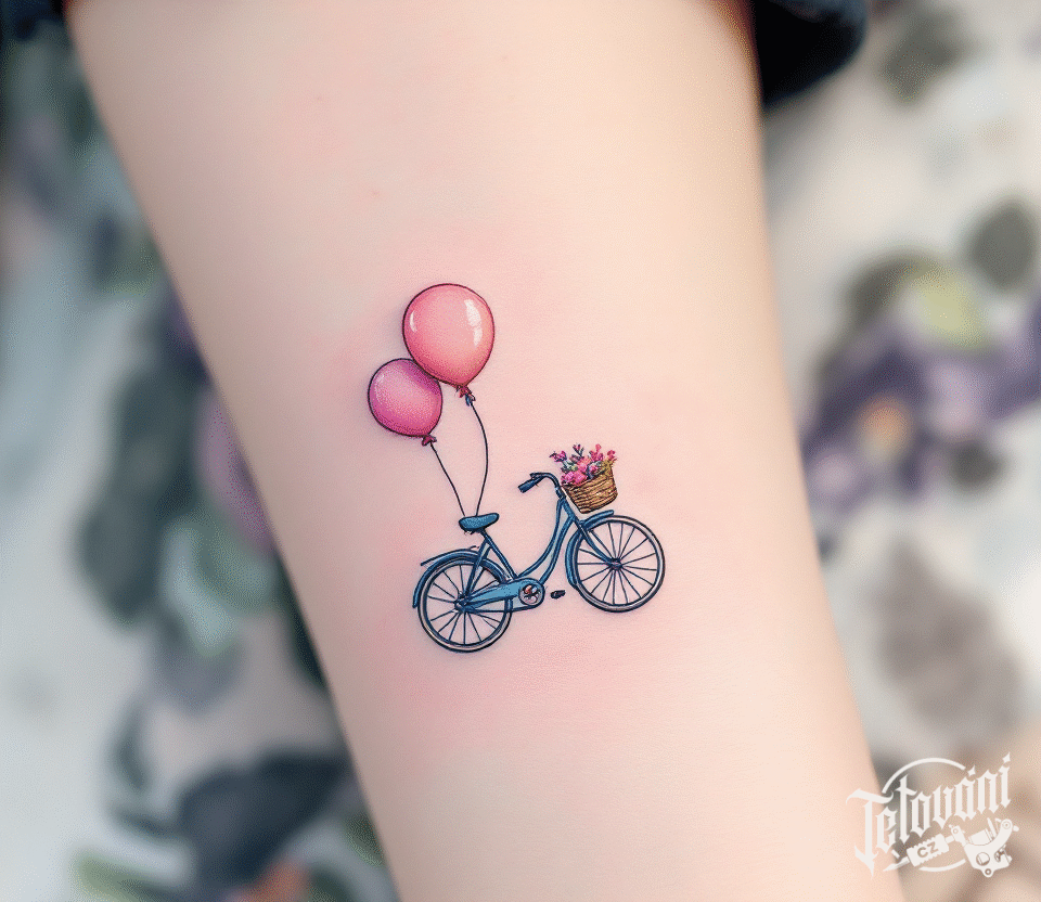 Tetování dívčí kolo s balonky na předloktí