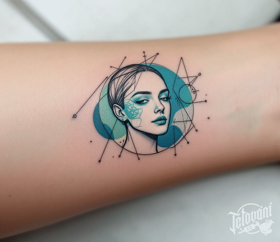 Tetování divergence, portrét smyslné ženy na předloktí