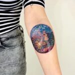 Tetování dívka se psem, příroda na paži