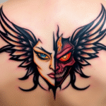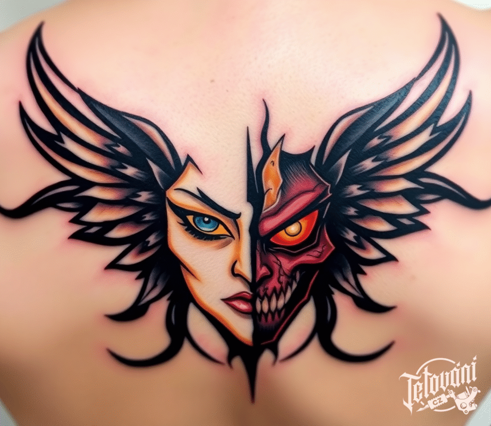 Tetování dobro a zlo, anděl s ďáblem na zádech