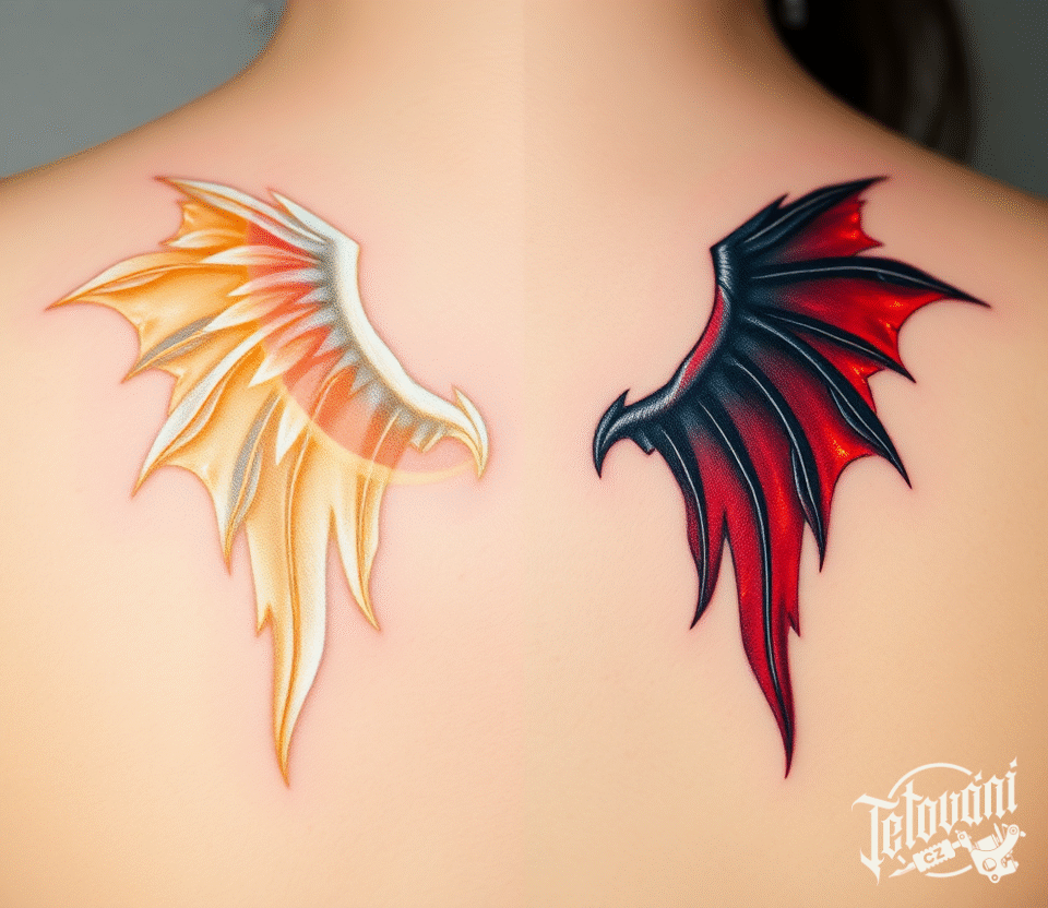 Tetování dobro a zlo, křídla na zádech