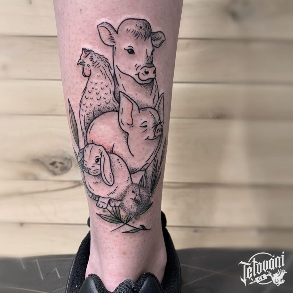 Tetování domácí zvířata na lýtku