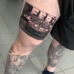 Tetování dopravní prostředek, auto a nápis na stehnu