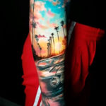 Tetování dopravní prostředek a zvíře, auto a lev na předloktí