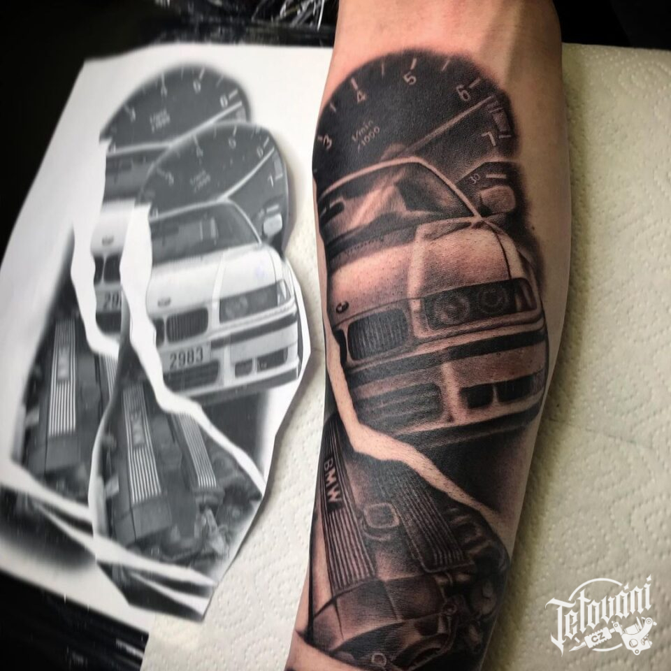 Tetování dopravní prostředek auto, hodiny na předloktí