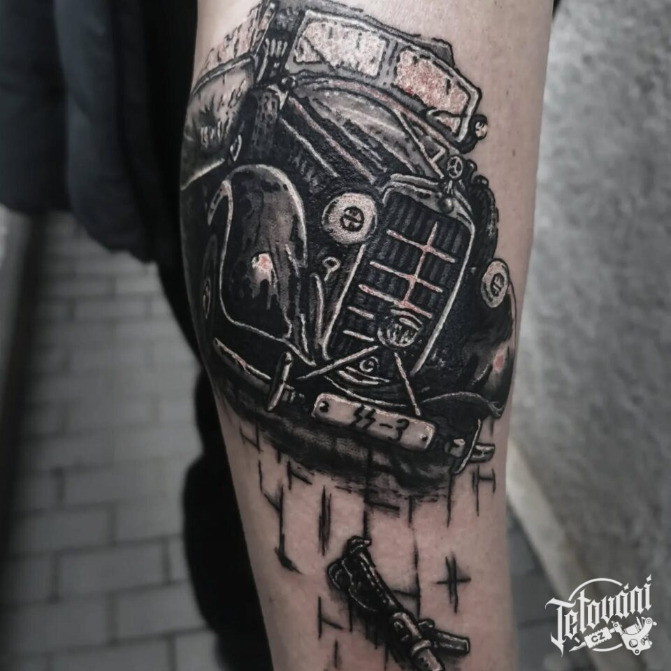 Tetování dopravní prostředek auto na lýtko