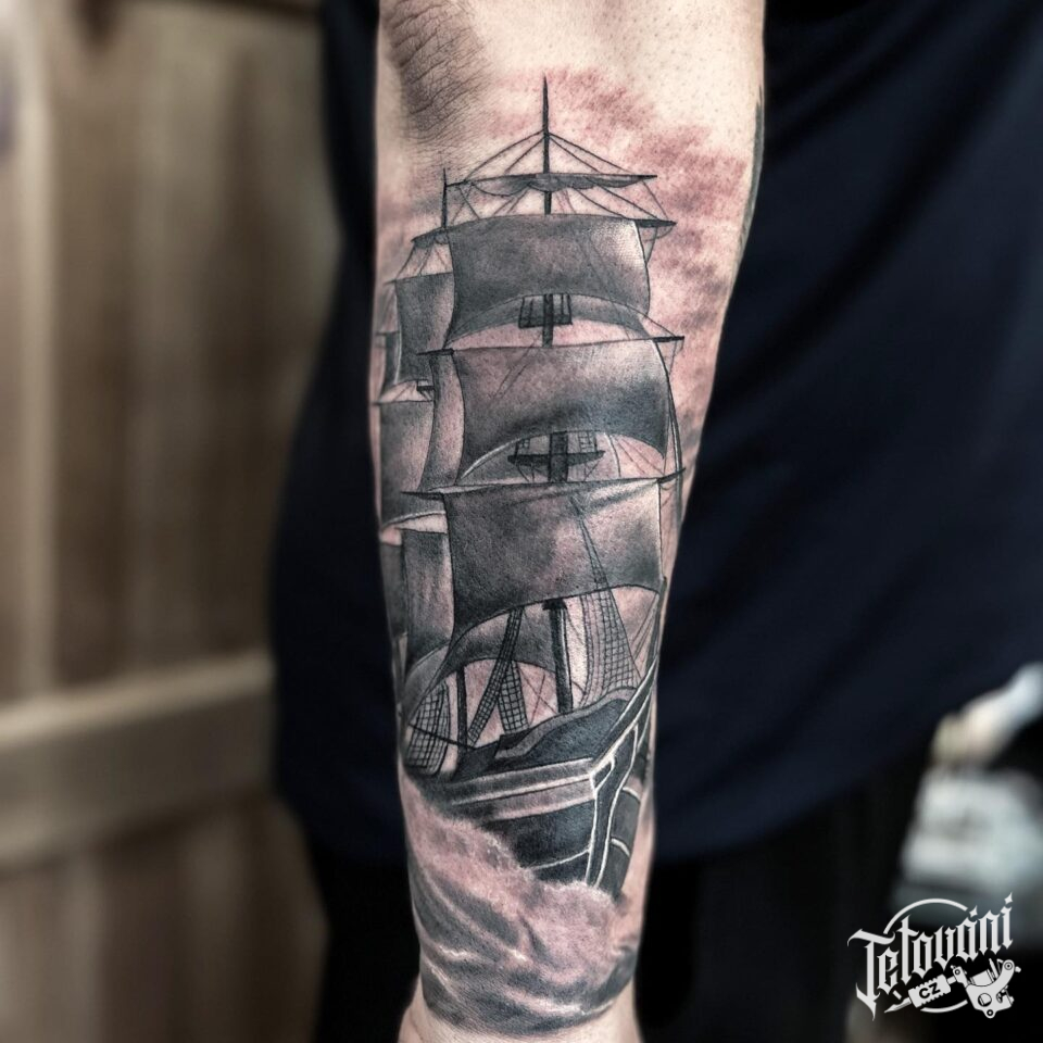 Tetování dopravní prostředek loď na předloktí