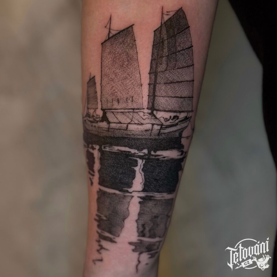 Tetování dopravní prostředek, loď na předloktí