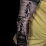 Tetování dopravní prostředek vlak, květina růže, symboly na ruku
