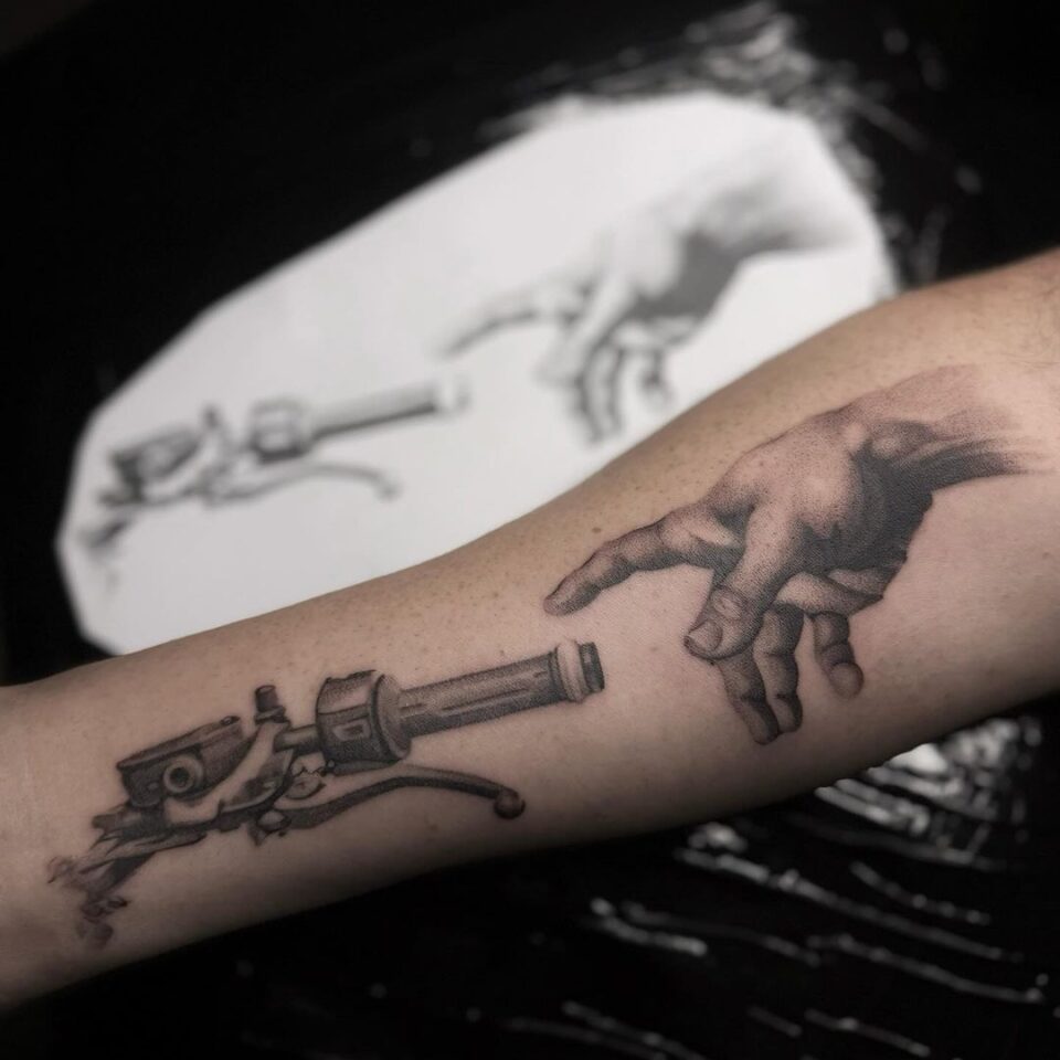 Tetování dopravní prostředky motorky a ruka na předloktí