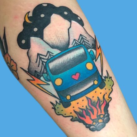 Tetování dopravní prostředky, auto a vrtulník na rameno