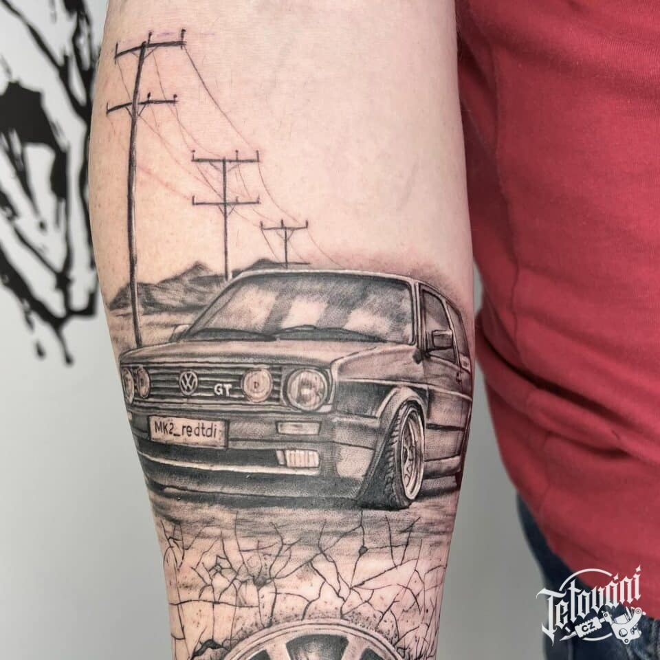 Tetování dopravní prostředky, auto na paži