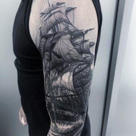 Tetování dopravní prostředky, loď na lýtku