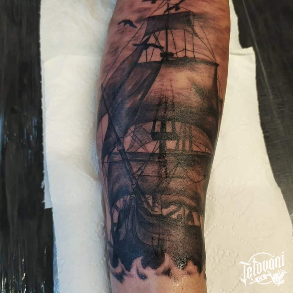 Tetování dopravní prostředky, loď na předloktí