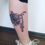 Tetování dopravní prostředky, motorka na lýtku