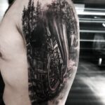 Tetování dopravní prostředky, motorkář, motorka na rameni