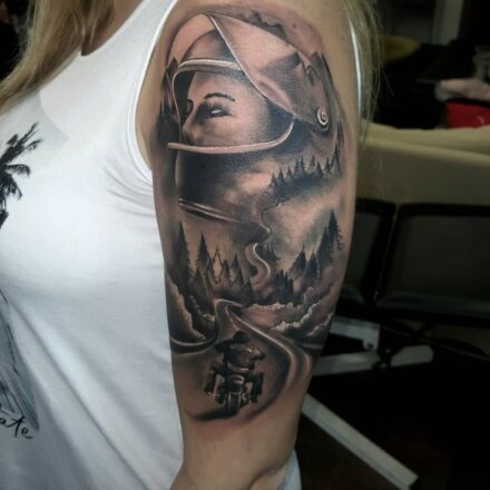 Tetování dopravní prostředky, motorkář na předloktí