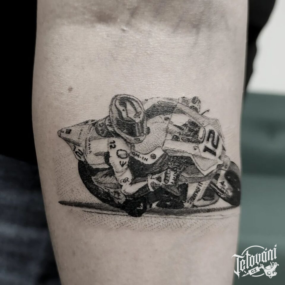 Tetování dopravní prostředky, motorkář na předloktí