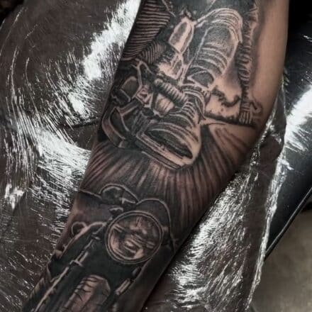Tetování dopravní prostředky, motorkář na rameni