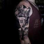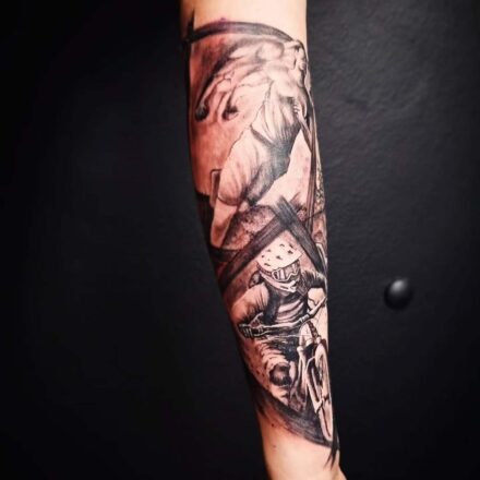 Tetování dopravní prostředky, motorkář na rameni