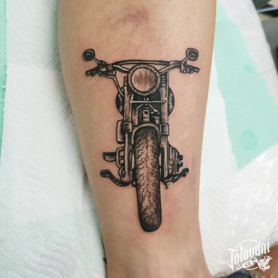 Tetování dopravní prostředky, motorkáři, motorka na noze