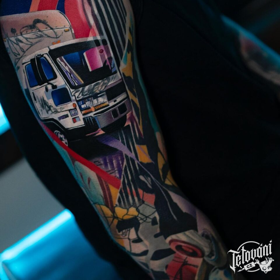 Tetování dopravní prostředky, nákladní auto na paži