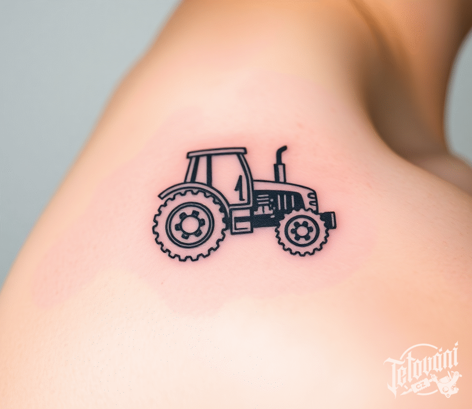 Tetování dopravní prostředky, obrys traktoru na lopatce
