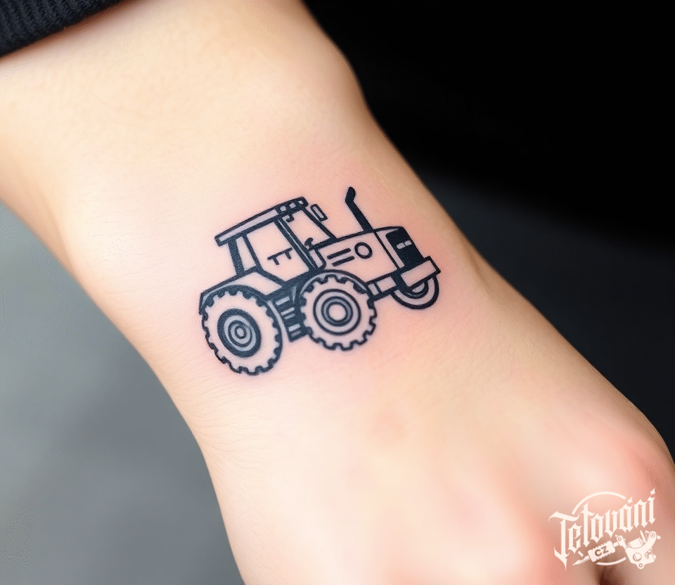 Tetování dopravní prostředky, obrys traktoru na ruce