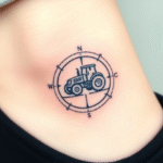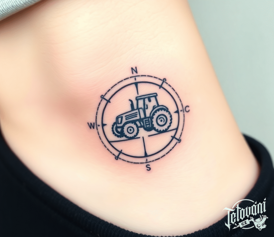 Tetování dopravní prostředky, traktor a kompas na kotník