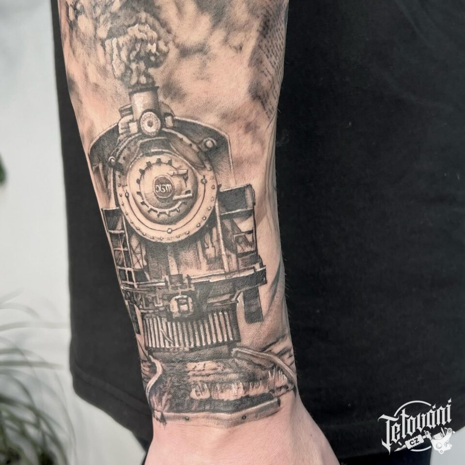 Tetování dopravní prostředky, vlak na předloktí