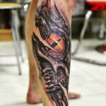 Tetování dračí oko na lýtku