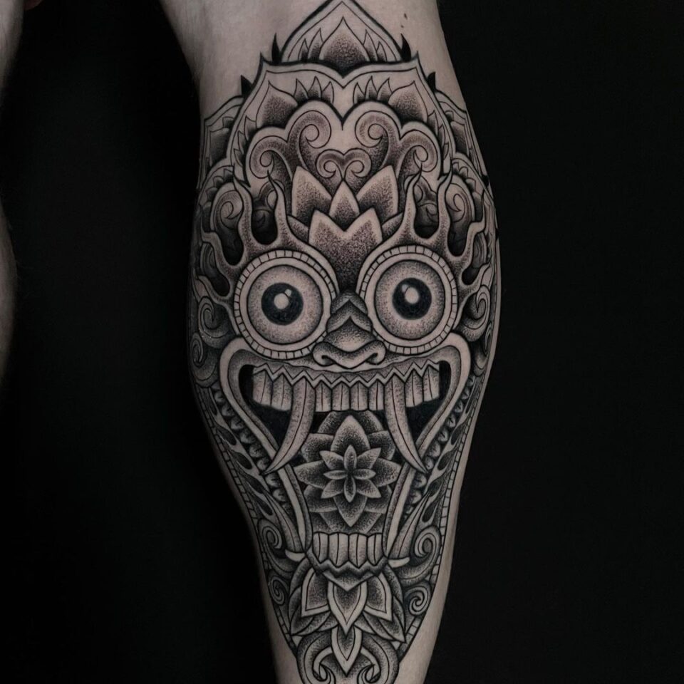 Tetování drak a mandaly na lýtko