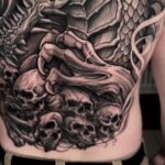 Tetování drak, lebky, symboly ochrany, síly na záda