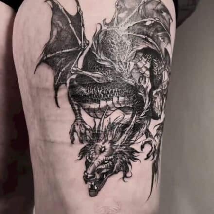 Tetování drak na boku stehna