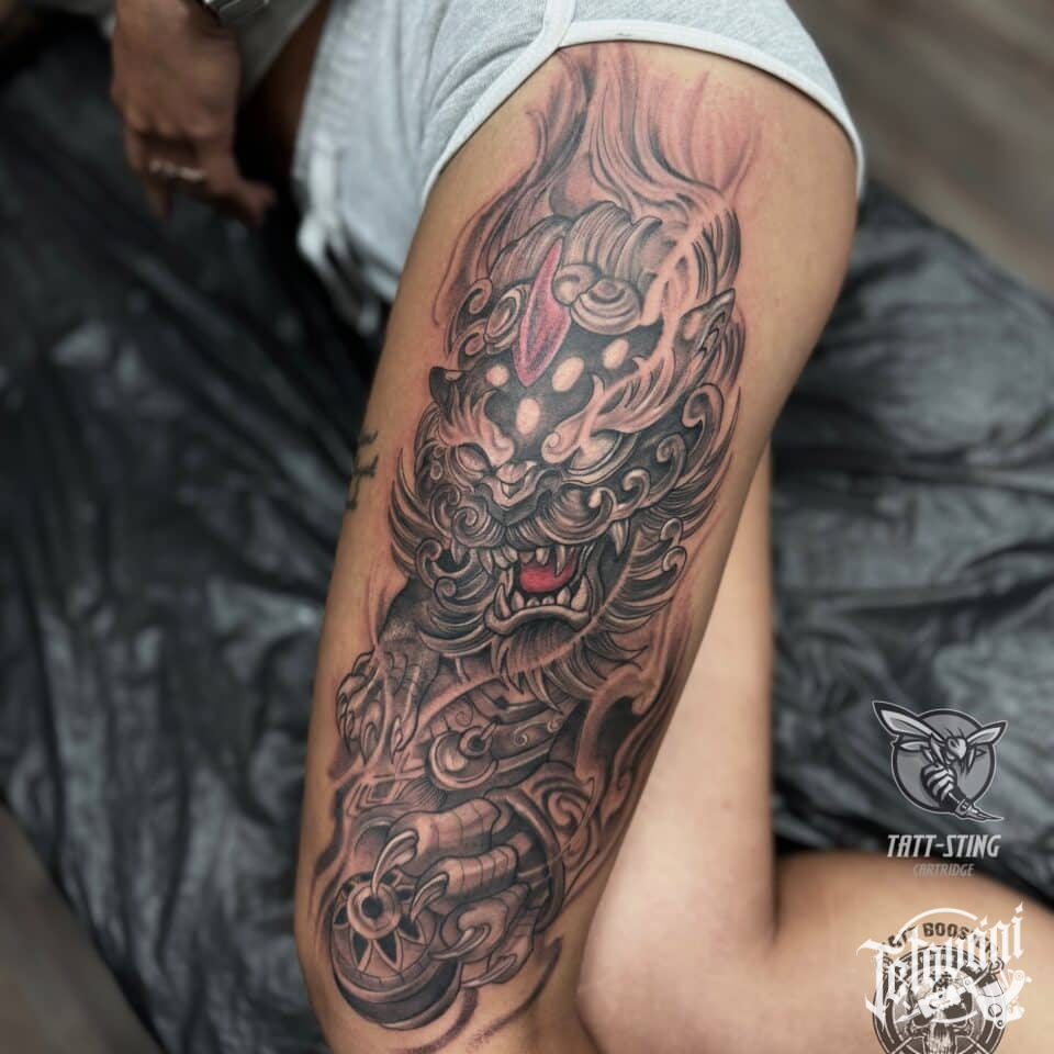 Tetování drak na stehně