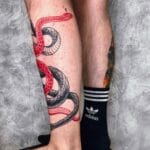 Tetování dva hadi symbol lásky na lýtko