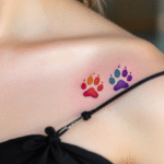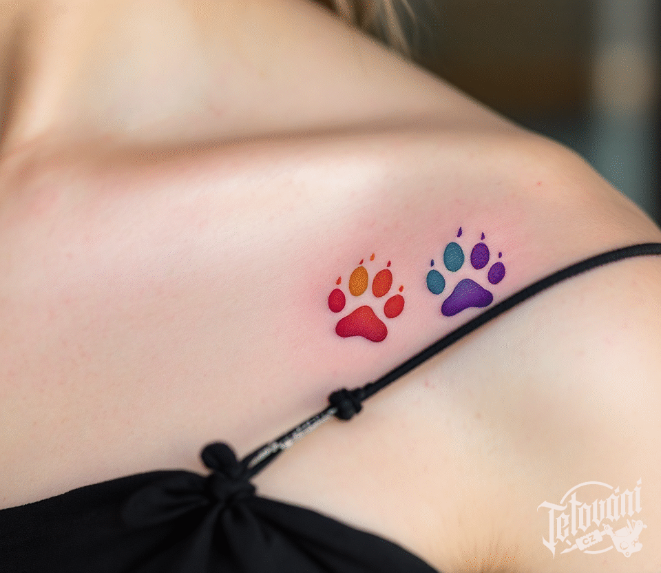 Tetování dvě kočičí tlapky pod klíční kostí