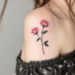 Tetování dvě malé růže na rameni