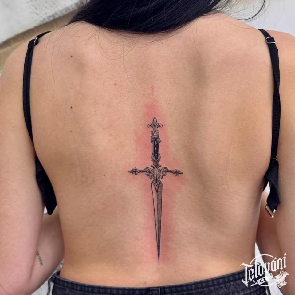 Tetování dýka na páteř