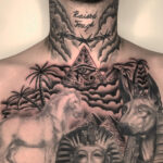 Tetování egyptská mytologie, Horovo oko a mýtické bytosti Anubis a Tutanchamon na hrudník