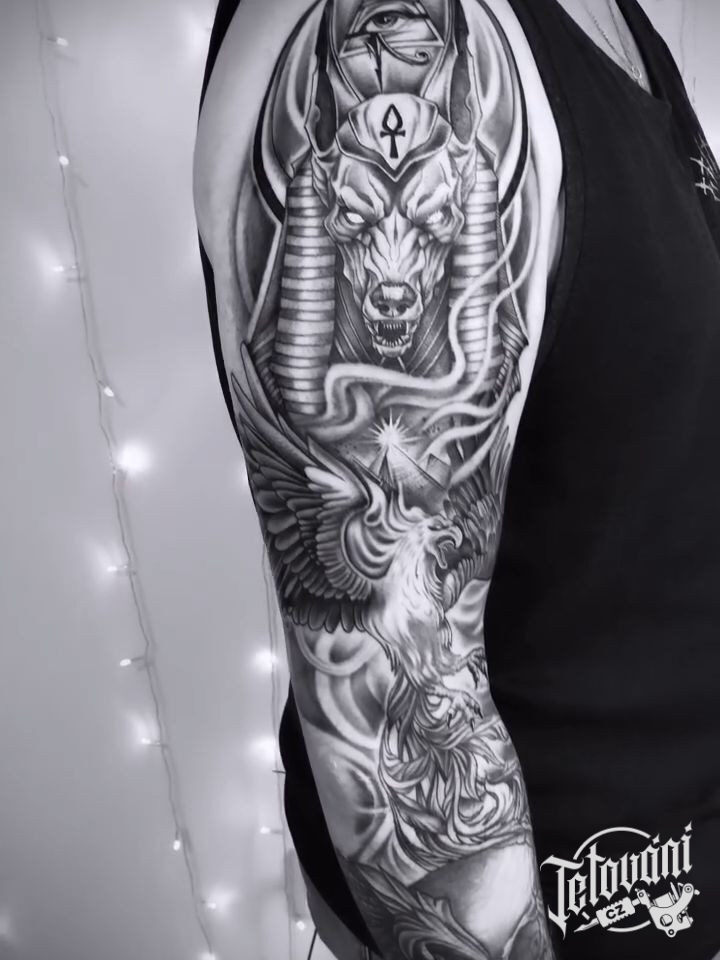 Tetování egyptská mytologie, mýtická Anu Bis, fénix na rameno