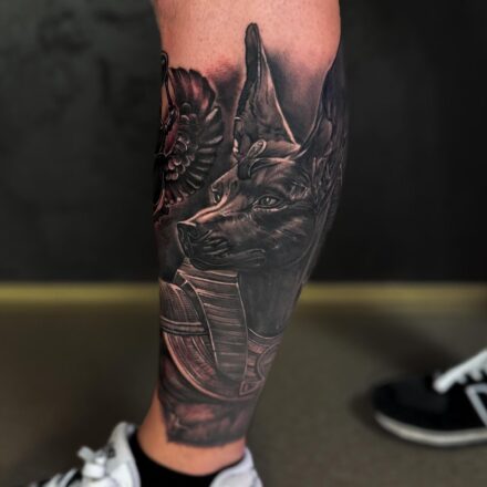 Tetování egyptská mytologie, mýtická bytost Anu bis na lýtko