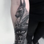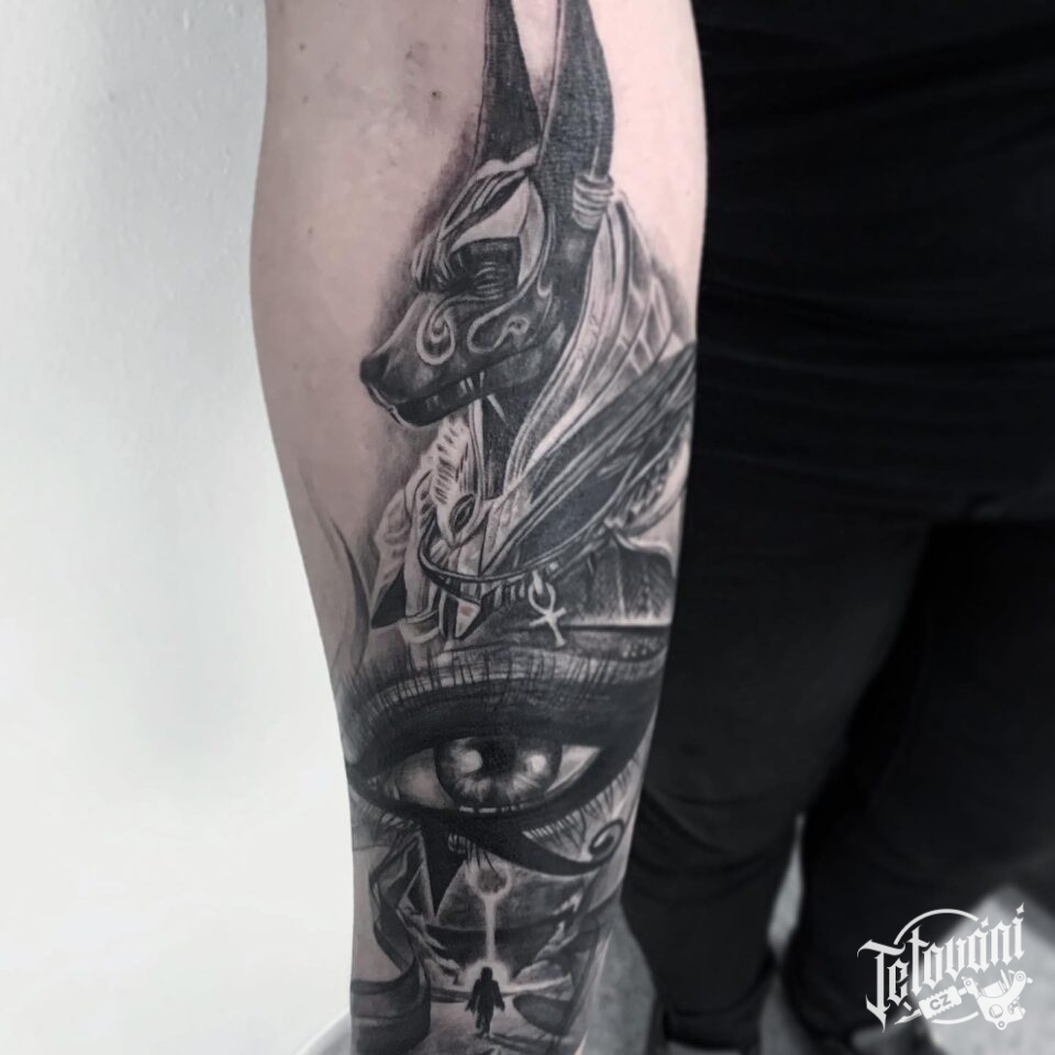 Tetování egyptská mytologie, mýtické bytosti, oko na předloktí
