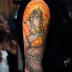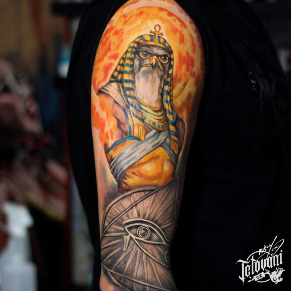 Tetování egyptské oko, egyptský pták Ra, portrét na rameno