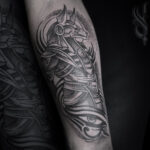 Tetování egyptské symboly, mýtická bytost, Anubis a egyptské oko na předloktí