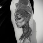 Tetování egyptské symboly, osobnosti, portrét Nefertiti na rameni
