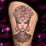 Tetování egyptské symboly, portrét na stehně
