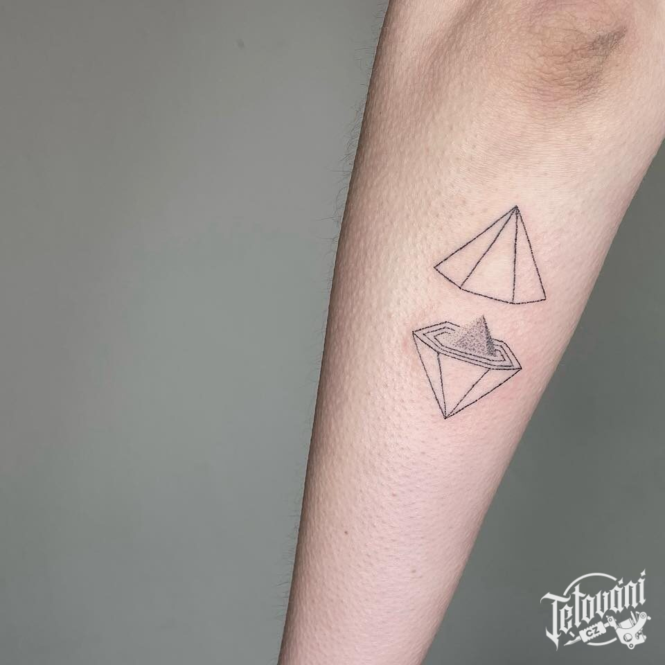 Tetování egyptské symboly, pyramida, trojúhelníky na předloktí